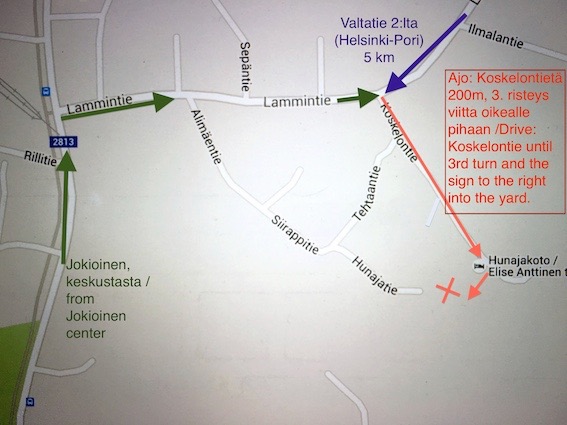 Postiosoite: Hunajatie 6, 31600 Jokioinen (huom. vain posti, tiellä ei ole kunnossapitoa).